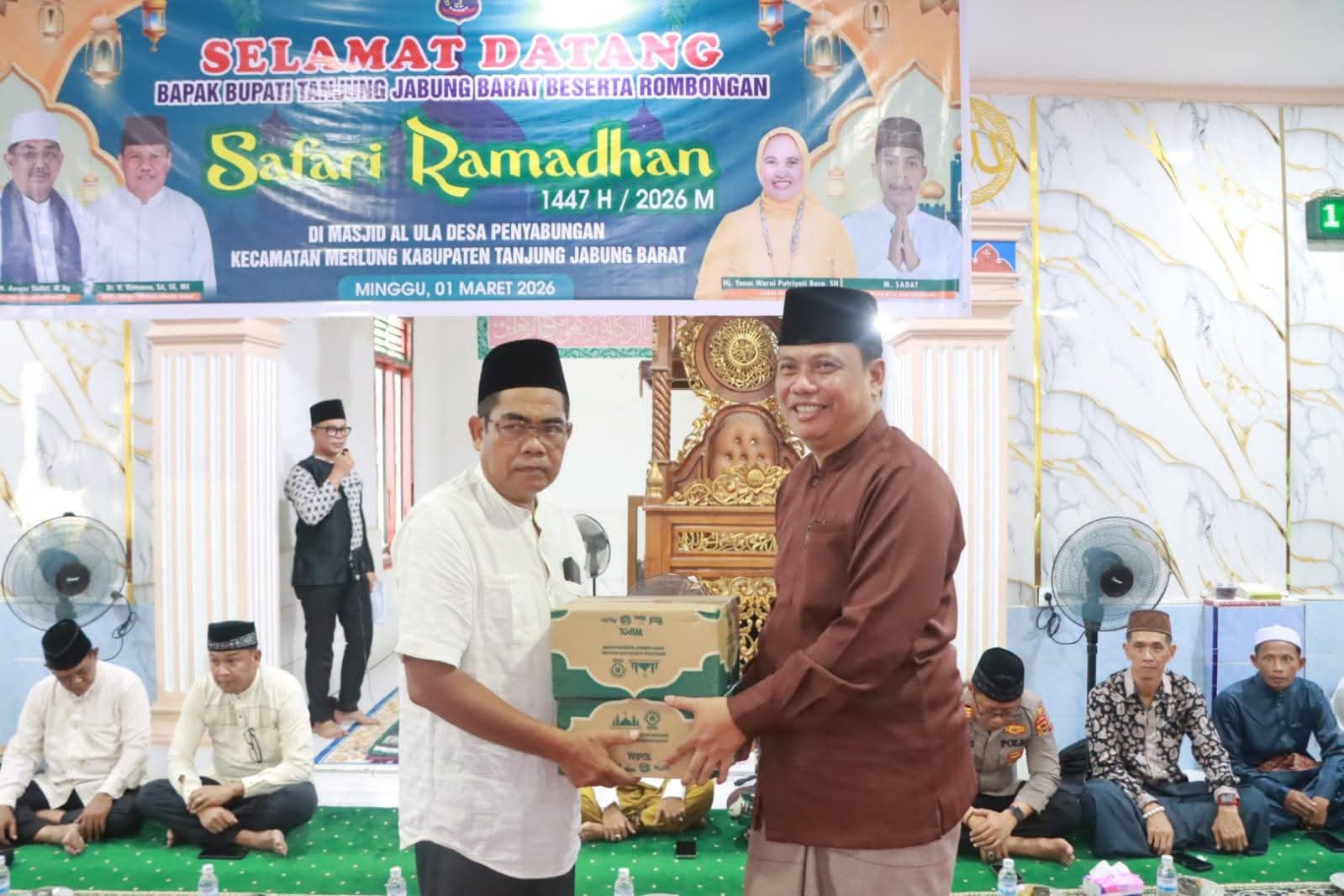TANJAB BARAT, Sentralsuarapena.com – Pemerintah Kabupaten Tanjung Jabung Barat (Tanjab Barat), menggelar Safari Ramadan di Masjid Al-ULA, Desa Penyabungan, Kecamatan Merlung, Minggu (01/03/1026). Kegiatan ini menjadi ajang silaturahmi sekaligus penyampaian program pembangunan kepada masyarakat.