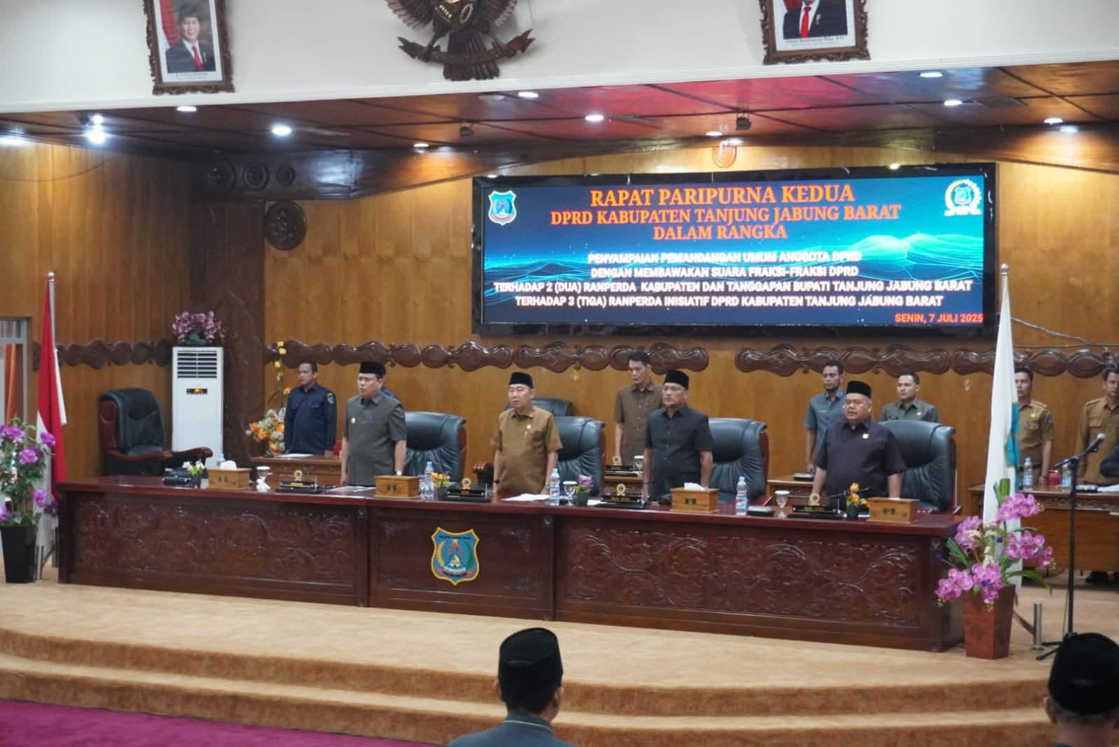 KUALA TUNGKAL, Sentralsuarapena.com – Dewan Perwakilan Rakyat Daerah (DPRD) Kabupaten Tanjung Jabung Barat (Tanjab Barat), menggelar Rapat Paripurna dengan agenda Penyampaian Nota Pengantar terhadap 2 Rancangan Peraturan Daerah (Raperda) usulan Pemerintah Kabupaten Tanjung Jabung Barat serta 3 Raperda Inisiatif DPRD, Senin (07/7/2025), di Ruang Rapat Utama DPRD Tanjab Barat.