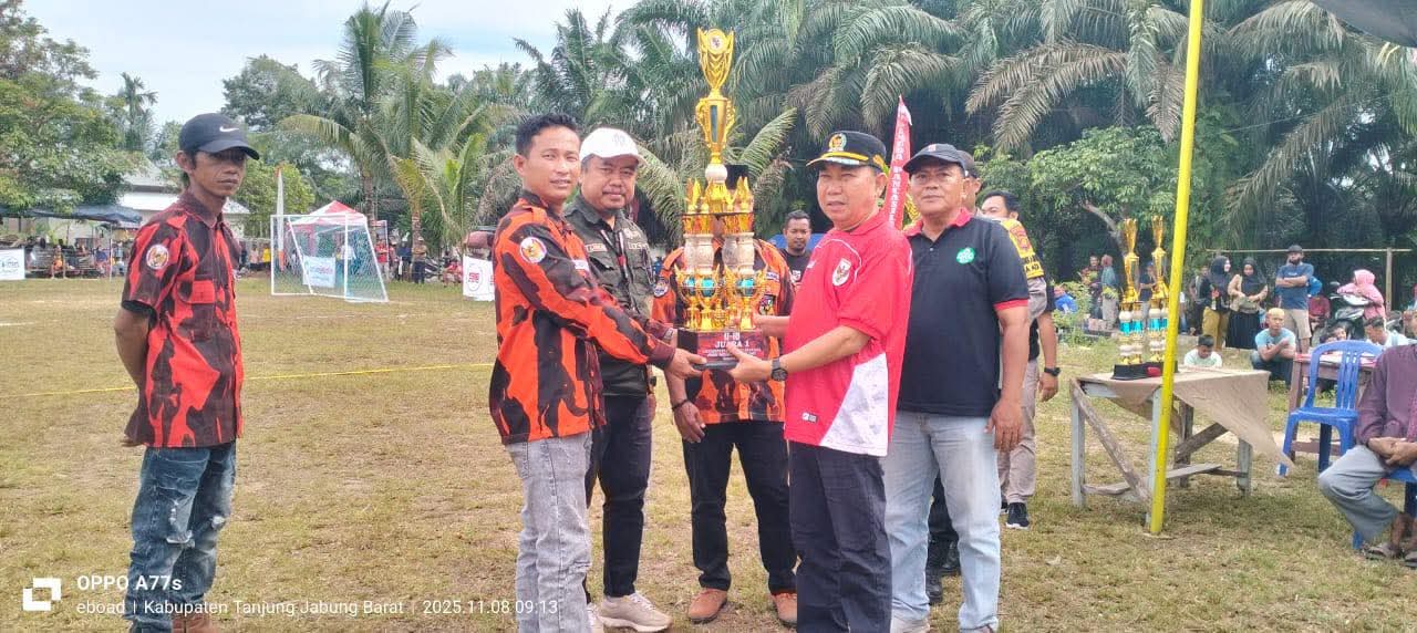 KUALA TUNGKAL, Sentralsuarapena.com – Ketua Dewan Perwakilan Rakyat Daerah (DPRD) Kabupaten Tanjung Jabung Barat (Tanjab Barat), Hamdani, S.E, menghadiri kegiatan Pembukaan Open Tournament Sepakbola Pemuda Pancasila Grassroot Football Festival U-10 & U-12 yang digelar di Desa Teluk Pengkah, Kecamatan Tebing Tinggi, Sabtu (8/11/2025) pagi.