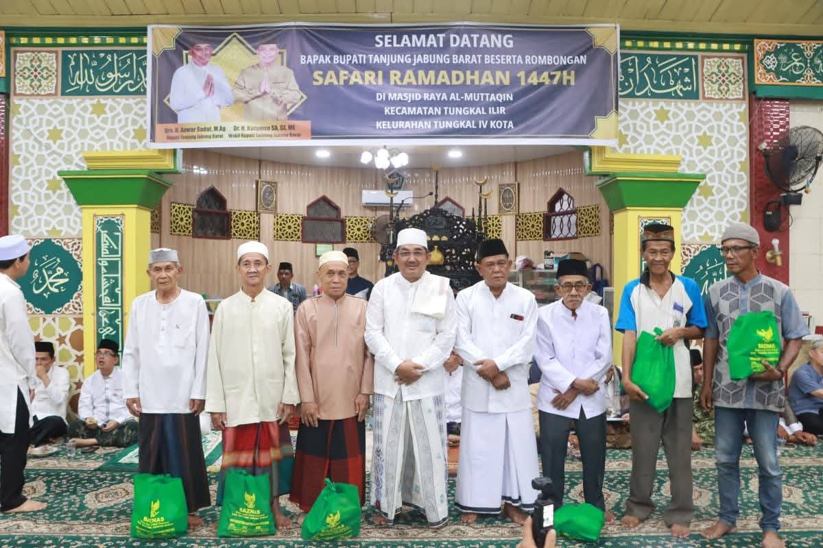 KUALA TUNGKAL, Sentralsuarapena.com – Pemerintah Kabupaten Tanjung Jabung Barat (Tanjab Barat), bersama Tim Safari Ramadan dari Universitas Jambi menggelar kegiatan Safari Ramadan 1447 H sekaligus memperingati malam Nuzulul Qur’an di Masjid Raya Al-Muttaqin Kuala Tungkal, Kelurahan Tungkal IV Kota, Kecamatan Tungkal Ilir, Jumat (06/03/2026).
