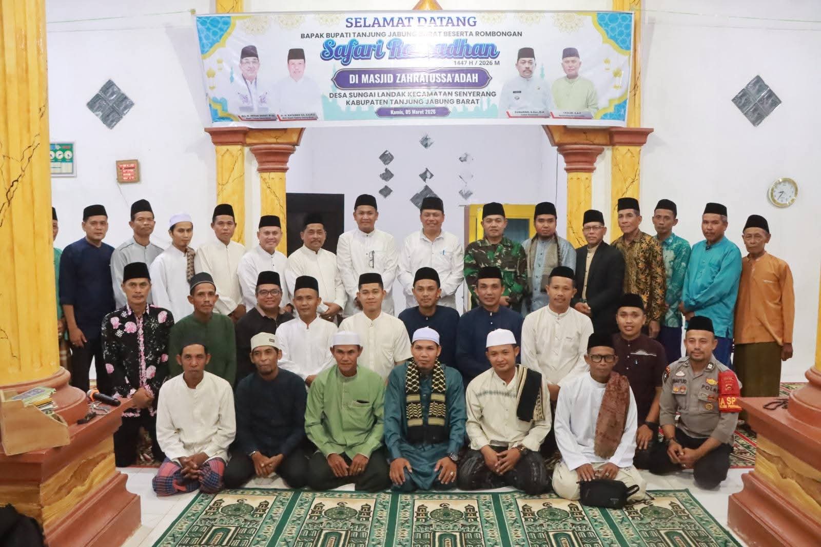 TANJAB BARAT, Sentralsuarapena.com – Pemerintah Kabupaten Tanjung Jabung Barat (Tanjab Barat), kembali melaksanakan kegiatan Safari Ramadan yang kali ini berlangsung di Masjid Zahratussaadah, Desa Sungai Landak, Kecamatan Senyerang, bertepatan dengan 15 Ramadan, Kamis (05/03/2026).